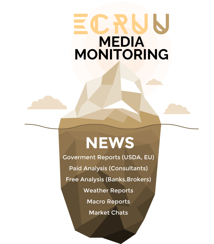 We look for all the sugar & ethanol related news that are accessible for free on the Internet. Our algorithm finds news in many languages, including Chinese, Polish etc. Topics cover markets, but also things like trade deals and sugar taxes and the weather, among many others.